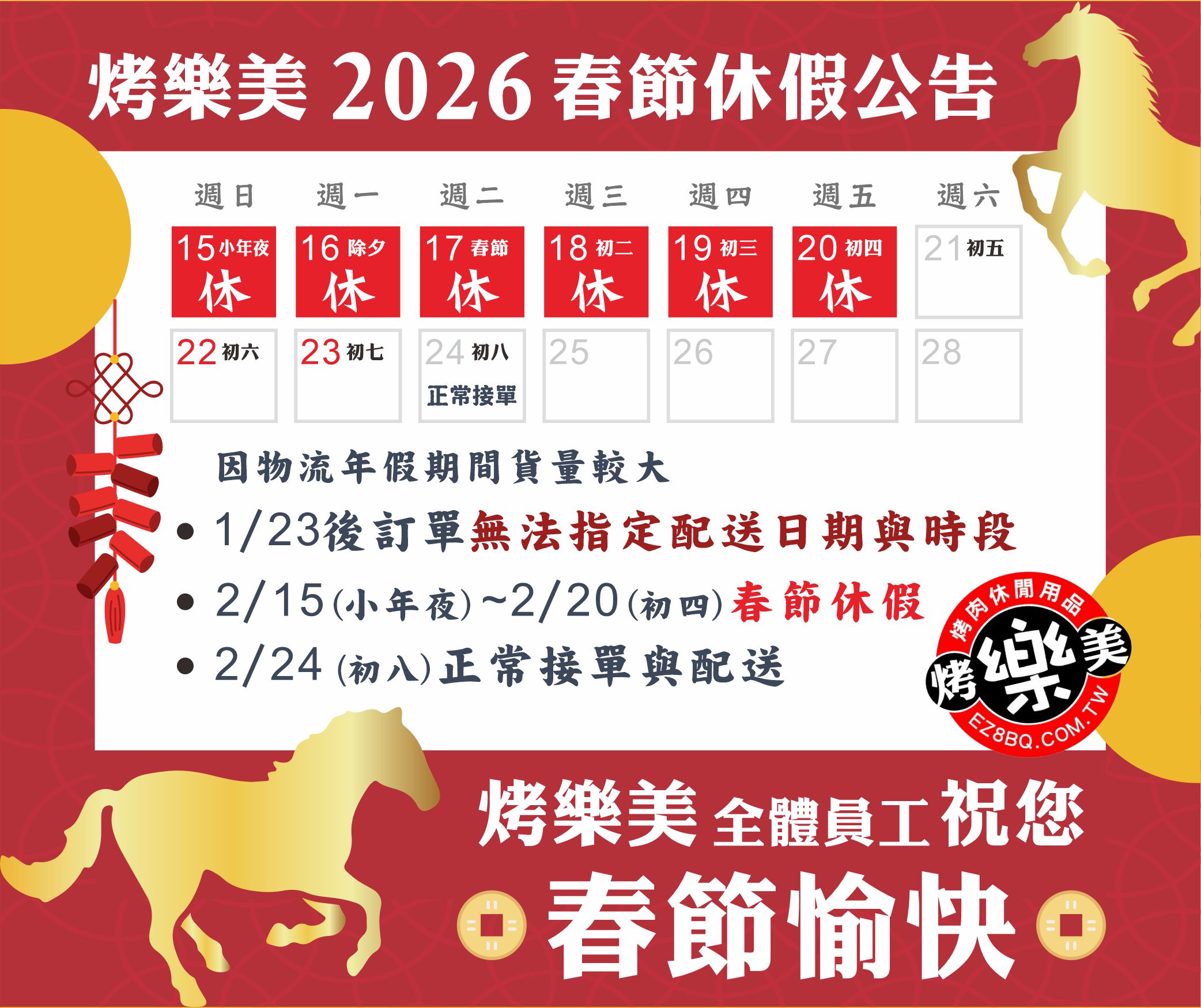 烤樂美 2026 春節公告