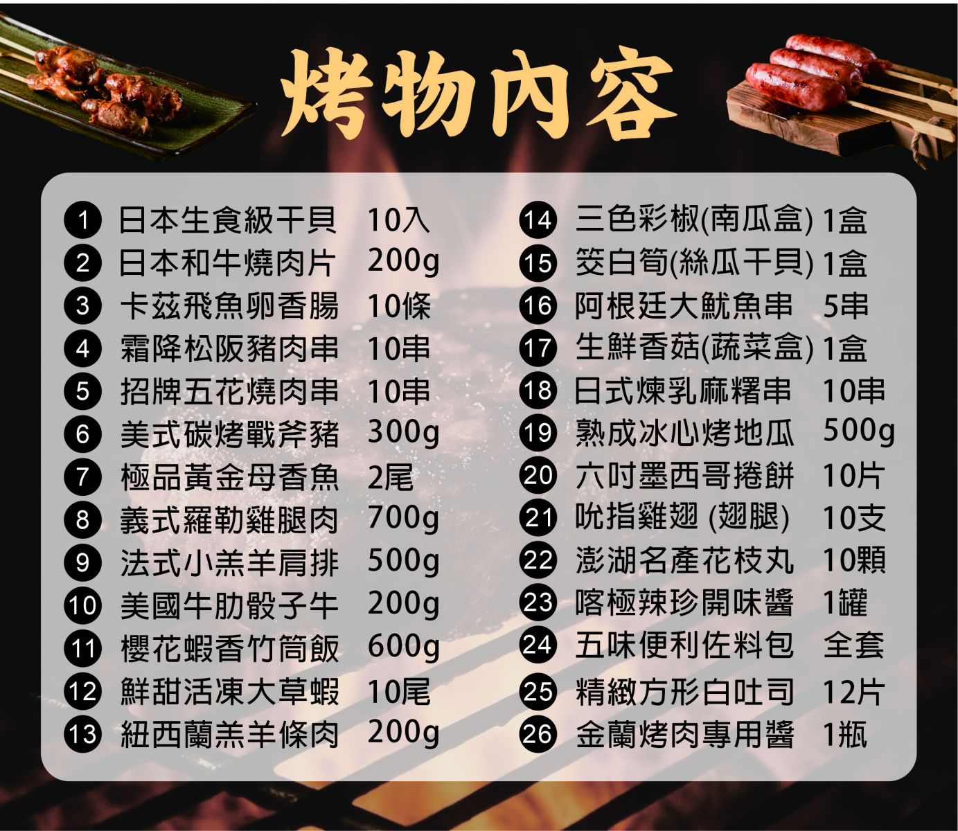 套餐不含【輕便型烤肉架】,可加購